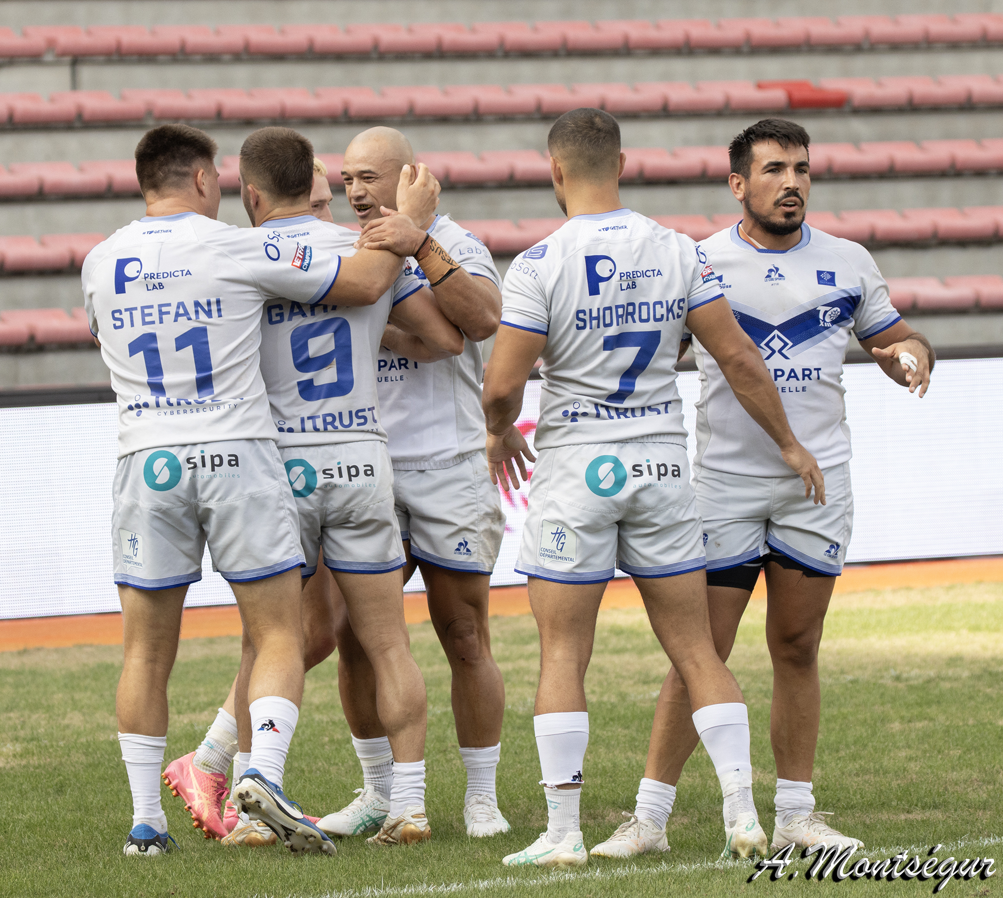 TO XIII : Olly ASHALL-BOTT (parrainé par Labsoft); Benjamin LAGUERRE (parrainé par Copy Sud); Paul MARCON (parrainé par Le Coq Sportif et O Sports); Reubenn RENNIE (parrainé par NUTRIPURE); Paul ULBERG (parrainé par Autobuy); Paul ULBERG (parrainé par Autobuy); Jake SHORROCKS (parrainé par iTrust); Ryan RIVETT (parrainé par SOPREMA) ; Lambert BELMAS (parrainé par Kaufman et Broad); Calum GAHAN (parrainé par Chris WATSON); Harrison HANSEN (parrainé par ADIC); Pierre-Jean LIMA (parrainé par Demeures d’Occitanie); Maxime STEFANI (parrainé par ASAP Solutions Photovoltaïques); Anthony MARION (parrainé par Rempart Mutuelle). Sont entrés en jeu : Eloi PELISSIER (parrainé par la Villa Da Vinci), Greg RICHARDS (parrainé par Geladoc), Sitaleki AKAUOLA (parrainé par Elior), Dimitri BISCARRO (parrainé par Mobalpa). 18ème : Baptiste RODRIGUEZ