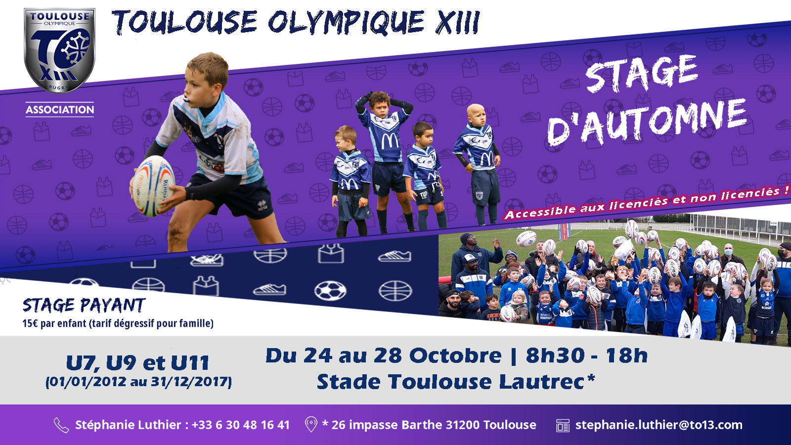 L’ADL (Accueil De Loisirs) du TO XIII sera ouverte une semaine durant les vacances de la Toussaint, du lundi 24 au vendredi 28 octobre 2022 inclus au complexe Toulouse Lautrec (26 impasse Barthe, 31 200 Toulouse). Les temps d’accueil du matin se feront de 8h30 à 9h15 et le soir de 17h00 à 18h00.