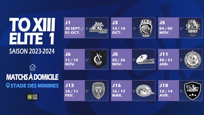 Le calendrier des Olympiens à domicile pour la saison 2023-2024 Elite 1 – © TO XIII