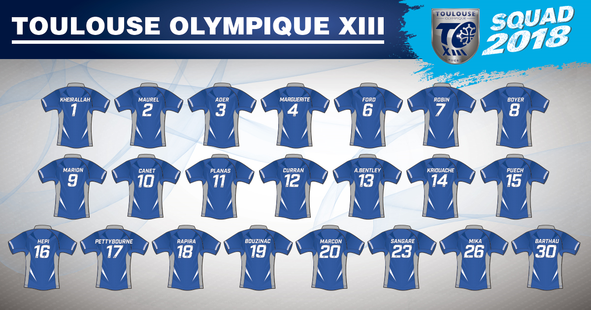 A quelques jours du début du Championship (samedi 3 février contre Swinton à Blagnac – 15h), le Toulouse Olympique dévoile son effectif et les numéros de squad pour cette saison 2018.