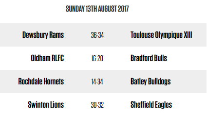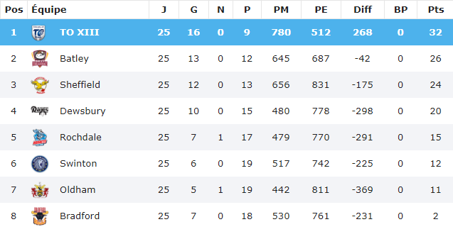 Fiche technique : Dewsbury Rams 36 – 34 Toulouse Olympique (Mi-temps : 18-14).