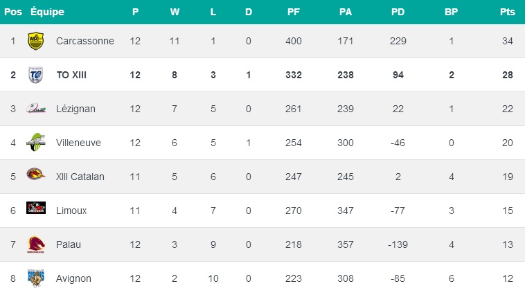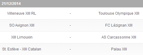 Le premier match de cette 13ème journée aura lieu samedi (20/12) et opposera St Estève/XIII Catalan à Palau, pour un derby Catalan qui vaudra encore cher. Palau ne peut plus prétendre au Top 4 mais voudra tout de même terminer le plus haut possible au classement. De plus, les Broncos sont sur une série de six revers de rang, et chercheront donc à stopper l’hémorragie. Mais en face, il y a un sérieux client. Après s’être offert Carcassonne dans l’Aude, puis Limoux à domicile, les futurs Dragons Catalans sont revenus en bonne position pour la qualification en Poule des As. A eux de continuer ainsi désormais pour enfin s’installer dans la première moitié de tableau.