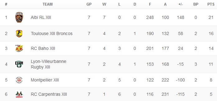 Si la manière n’y était pas forcément, l’essentiel est là pour les Toulouse XIII Broncos qui signent un troisième match d’affilée sans défaite, et repassent ainsi devant Baho qui avait disposé de Lyon le samedi. La route est toutefois encore longue pour l’équipe du Président DELPECH, à qui il reste deux déplacements pour un match à domicile, contre Albi, avant la fin de la première phase.