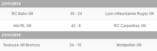 Toulouse XIII Broncos : 7 essais de Bouzada (6), Marcon (17, 26), N’Zoungou (52), Faure (66), Marguerite (77), Bouregba (79) et 3 transformations de Chanet