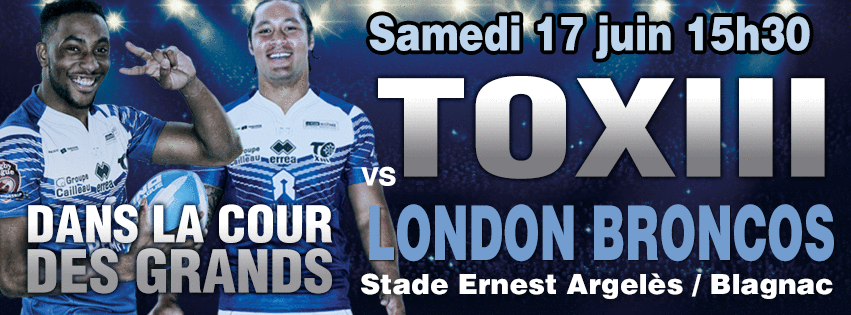 La boutique du TO XIII se trouve au stade Arnauné des Mininmes et est ouverte du lundi au vendredi, de 9h à midi et de 14h à 18h, mais une semaine avant ce TO XIII-Londres, ce samedi 10 juin, les Toulousains seront déjà à Blagnac pour recevoir les Rochdale Hornets (18h30). Et comme d’habitude, la boutique du TO sera ouverte à l’entrée principale du stade Ernest Argelès et là encore, les enfants de moins de 16 ans pourront bénéficier de cette offre unique !