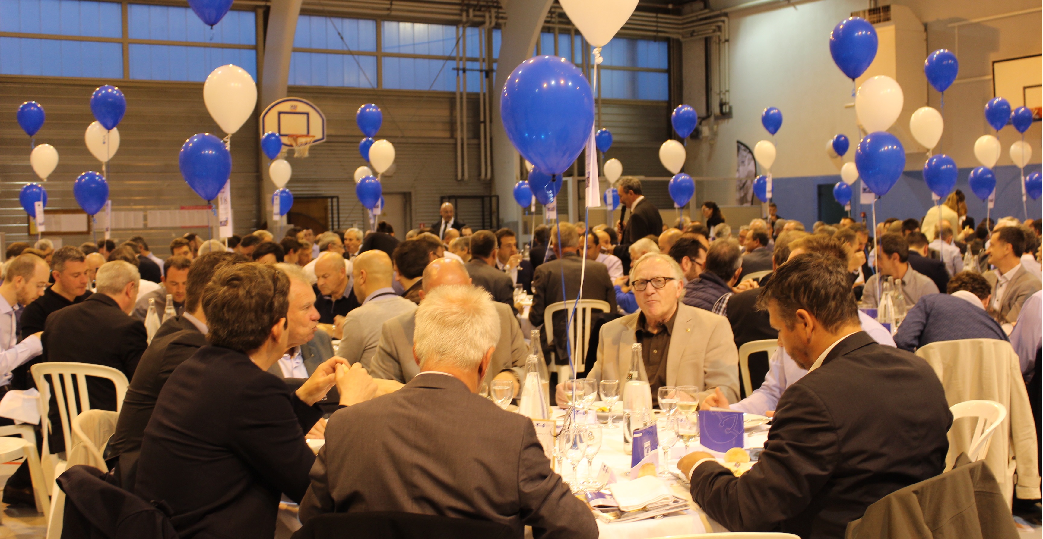 Dans un gymnase habillé par Pierre PESENTI et la société Déco Ballon Service, les Compagnons et partenaires ont pu apprécier un menu imaginé par le Chef étoilé des Jardins de l’Opéra, Stéphane TOURNIE, et réalisé grâce aux talents culinaires des équipes de Marceau FALCOU (Falcou Traiteur).