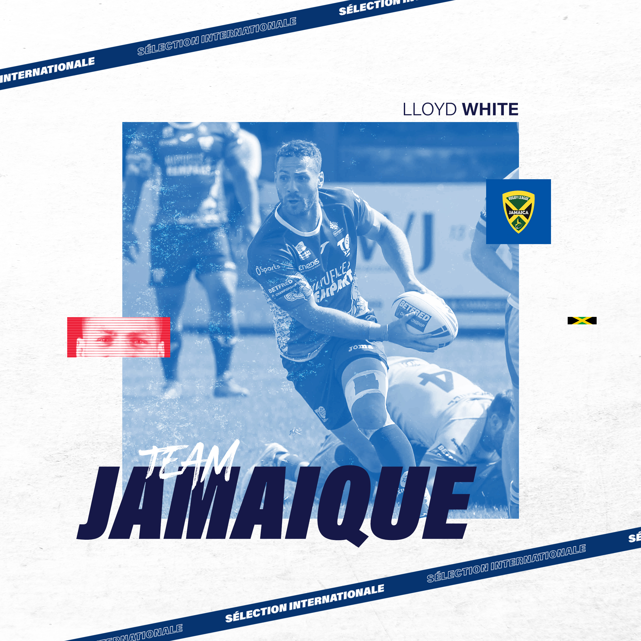 Le talonneur Olympien est certes né à Cardiff (Pays de Galles) et a déjà porté le maillot du XIII du Poireau à 15 reprises, notamment lors de la dernière Coupe du Monde à 9 il y a deux ans, mais il peut aujourd’hui prendre part au premier Mondial de l’histoire des Raggae Warriors grâce à ses origines paternelles, puisque son grand-père était jamaïcain.