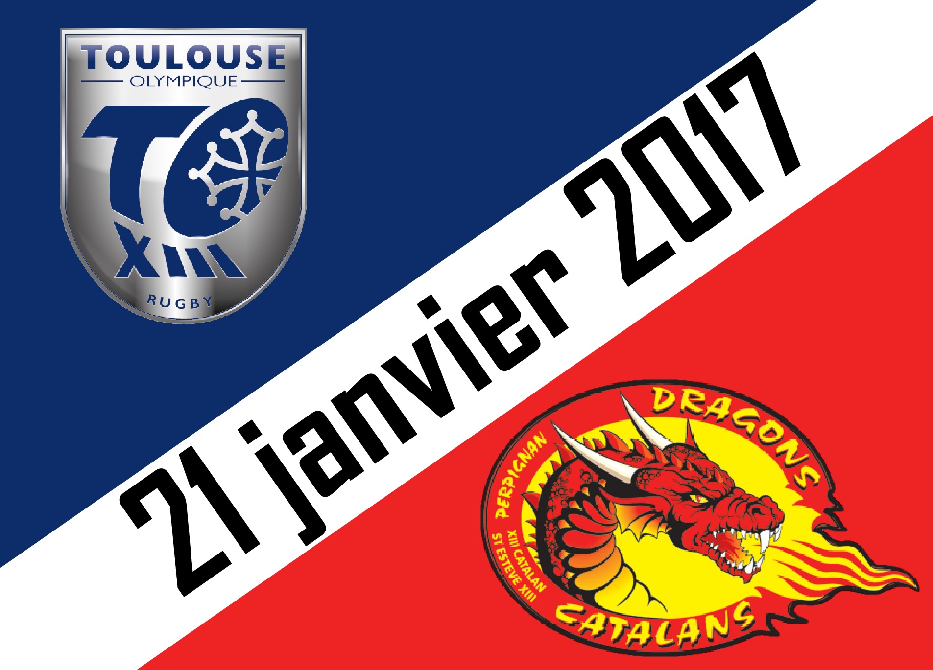 Le Toulouse Olympique XIII affrontera les Dragons Catalans lors d’un match de prestige qui se jouera le samedi 21 janvier 2017 en terres toulousaines.