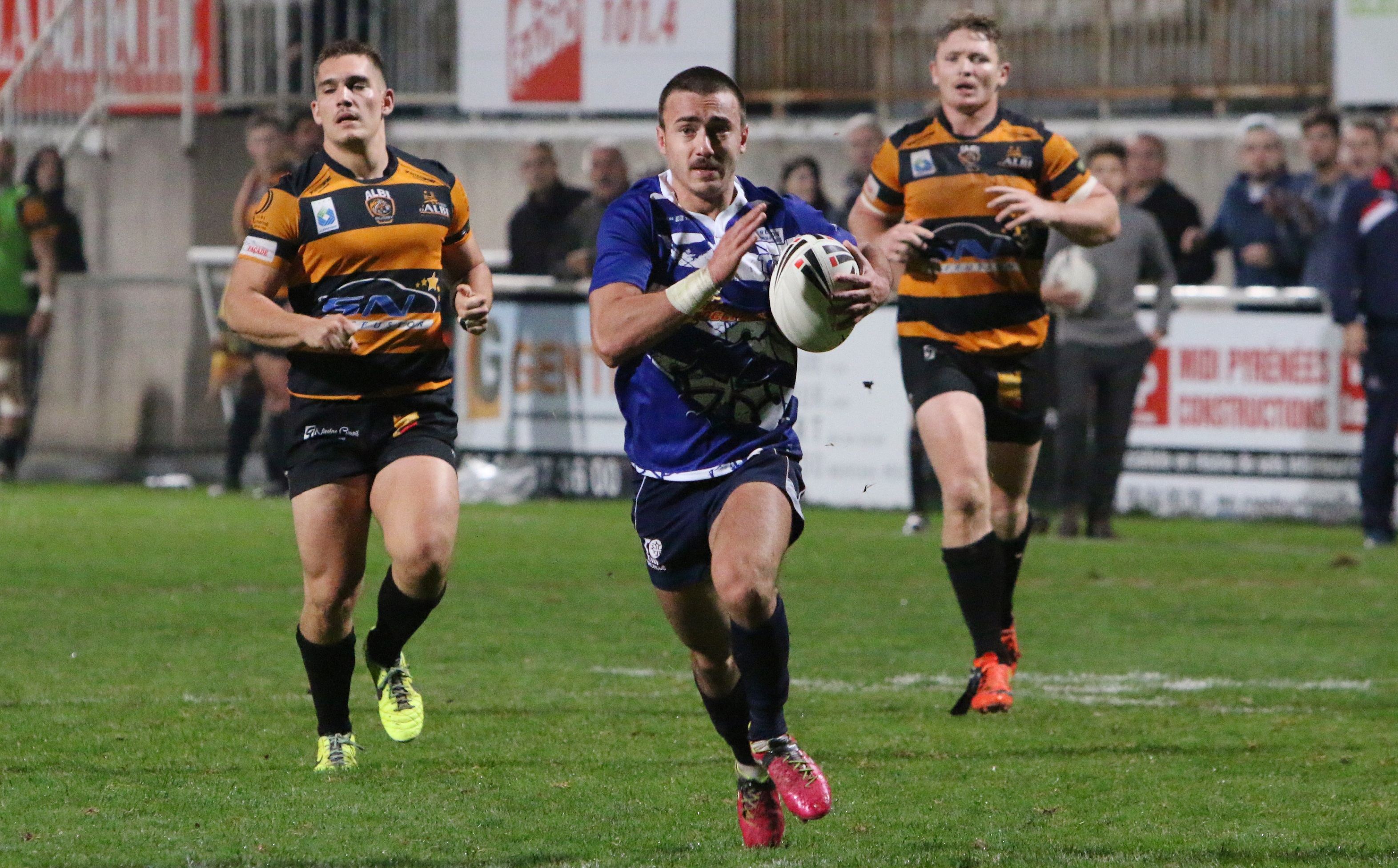 Pour terminer, Etienne est revenu sur la nouvelle aventure qu’il vit au TO : « Je me sens très bien ici, j’ai été très bien accueilli. Je ne savais pas trop où je mettais les pieds car je ne connaissais pas beaucoup de monde qui était passé, ou était, au TO, mais j’ai été très agréablement surpris. C’est un club très professionnel. J’ai eu une expérience en Angleterre où j’ai connu le monde professionnel (NDLR : Etienne a joué dans la catégorie U19 des Salford Red Devils entre l’été 2013 et le début d’année 2015) et nous n’avons rien à leur envier. Ici, tout est carré, les gens sont super compétents et sympas. Je sens que je progresse bien, je continue d’apprendre en jouant en Elite 1 avec les TO Broncos et en m’entraînant avec la Une. C’est un très bon club, on s’éclate bien, et je conseille vivement à tous ceux qui le peuvent de rejoindre le Centre de Formation du TO (sourire). Mon objectif, c’est de jouer des matchs avec l’équipe Une en League One, même m’installer au sein de l’équipe si l’opportunité se présente. Je veux rentrer dans cette équipe et y rester jusqu’à la fin : je veux participer aux phases finales, c’est mon objectif. »