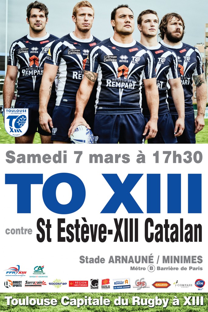 Toujours à 13h, le tournoi de National Touch XIII, organisé par la Fédération Française de Rugby à XIII aura lieu sur le complexe de Toulouse Lautrec (à seulement 200 mètres du Stade Arnauné – Impasse Barthe), et sera suivi de la rencontre des Juniors Nationaux du TO face à leurs homologues de Lescure d’Albigeois (15h30).