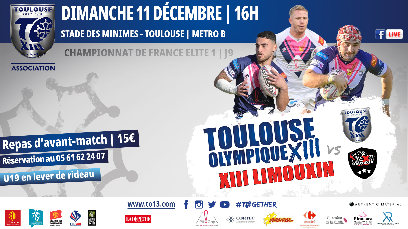 Dimanche 11 décembre à 16h00, le TO Elite 1 reçoit le XIII Limouxin au stade des Minimes pour la 9ème journée du Championnat de France Elite 1.