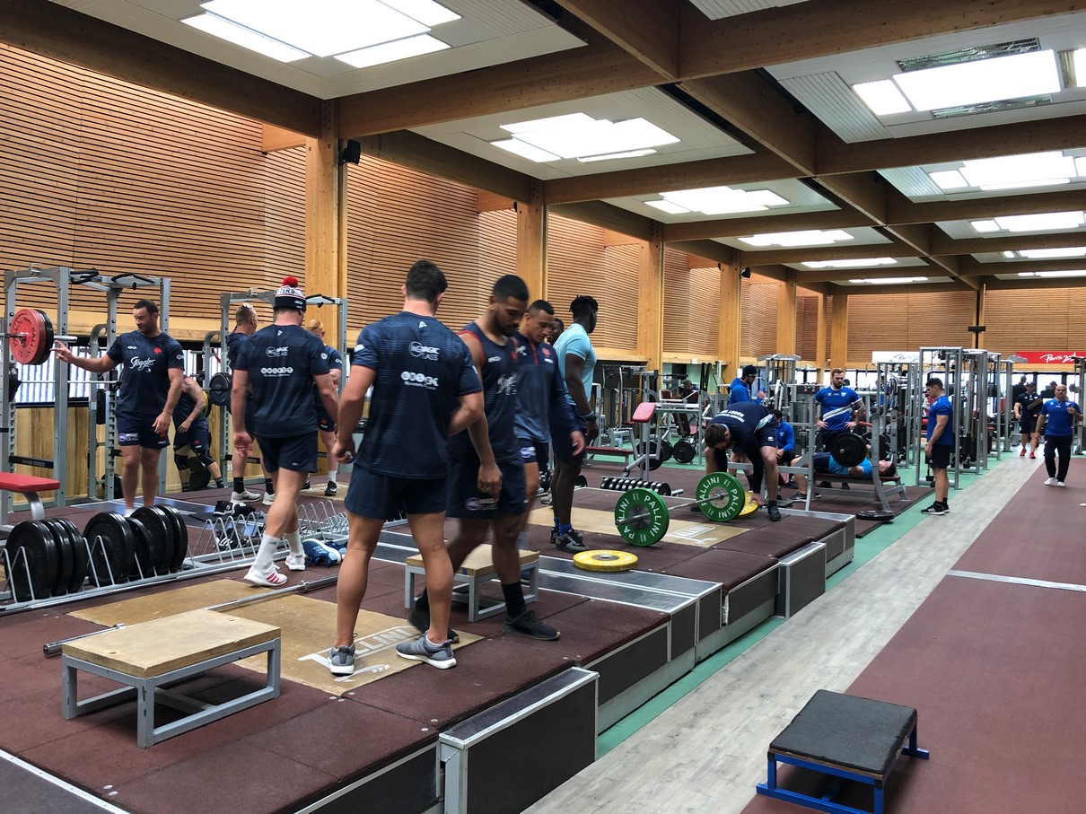 Puis, après un repas vite ingurgité, place à la lutte et à la musculation en 2 groupes – avants et trois-quarts. Là encore, implication et intensité maximales étaient de rigueur.