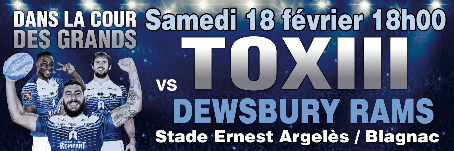 A noter dans les agendas : le prochain match à domicile du Toulouse Olympique XIII se jouera le samedi 18 février contre les Dewsbury Rams (Béliers). Coup d’envoi à 18 heures.