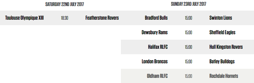 La suite la saison du TO – sa participation à la poule des « Qualifiers » (la poule de montée avec des équipes de Super League, dont les Dragons Catalans) ou celle du Championship Shield – se joue sur cette dernière journée de la première phase du Championship. Dans un premier temps, la victoire est indispensable aux Olympiens, afin de reprendre provisoirement la quatrième place à Halifax. Si le club Olympien s’impose, alors il n’y aura plus qu’à espérer que Hull KR l’emporte à Halifax dimanche (23/07 – 16h en France).