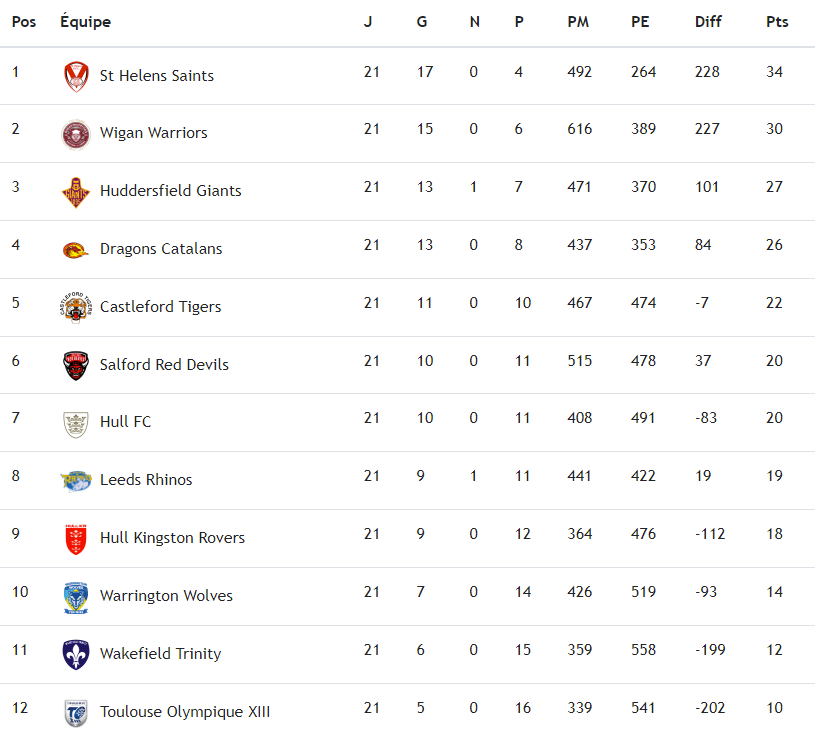 À l’issue de la 21e journée de championnat, le TO s’est incliné 6-30 à domicile face à Hull FC ce vendredi 29 juillet, mais son concurrent direct au maintien, Wakefield, s’est quant à lui imposé 6-32 chez les tigres de Castleford. Ces résultats font donc retomber le Toulouse Olympique en dernière place du classement, et avec 6 matchs restants en phase régulière, une victoire est impérative pour se maintenir en Super League. La formation de Sylvain HOULES se déplace ce jeudi 4 août chez Hull KR, rencontre à suivre en direct sur beIN Sports 1 à 21h.