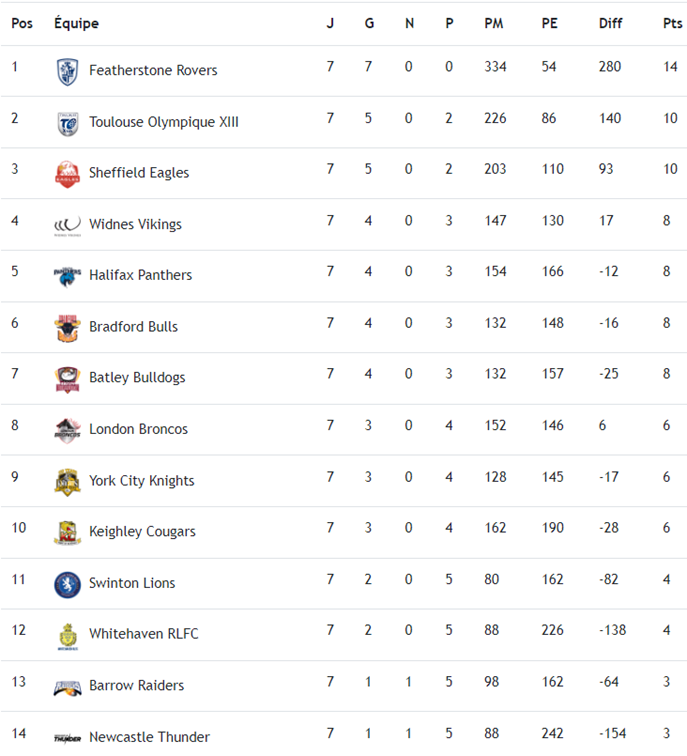Newcastle Thunder v Sheffield Eagles (vendredi 7 avril, 16h)