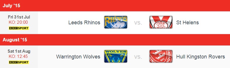 La première demi-finale de cette édition 2015 de la Challenge Cup sera un choc au sommet : Leeds contre St Helens, l’actuel leader de Super League contre son dauphin, le vainqueur de la dernière finale de Cup contre le vainqueur de la dernière édition de Super League. Pourtant, même si les deux équipes semblent dos à dos, le bilan de la saison donne l’avantage aux Rhinos qui par deux fois ont battu les Saints durant la première phase du championnat, et avec la manière : 16-41 au match aller et 48-16 au retour, début juillet. Pour retourner en finale, ce qui serait une première depuis 2008, St Helens devra faire mentir les statistiques.