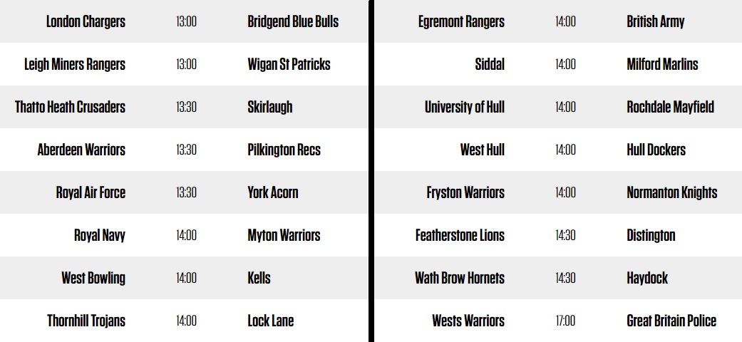 Ce premier tour rassemble pour le moment des équipes amateurs, comme les Wath Brow Hornets que le TO avait affronté lors de son entrée en lice dans la compétition la saison passée, des formations des différents corps d’armée Britanniques et des clubs universitaires.