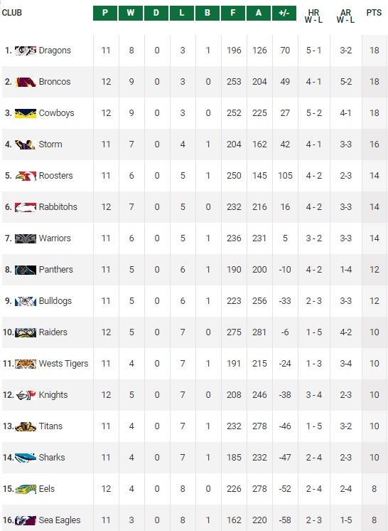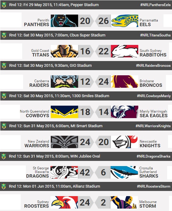 Résultats round 12 – NRL