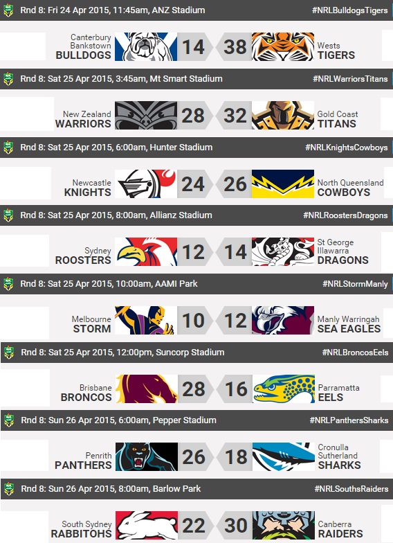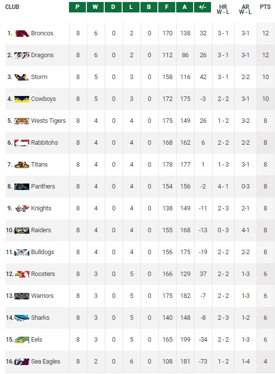 Résultats round 8 – NRL