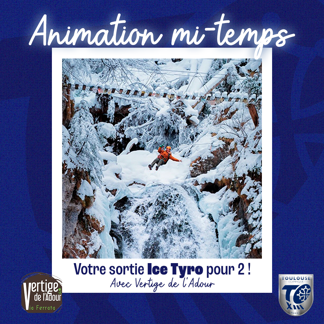 Samedi 4 mars, participez à notre animation mi-temps pour tenter de gagner 3 x 2 pass Ice Tyro, mis en jeu par Vertige de l’Adour. En suivant un parcours de tyroliennes, vous profiterez d’une magnifique balade suspendue au dessus de cascades gelées, accessible à tous.