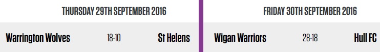 Après leur succès respectif sur St Helens et Hull FC, Warrington et Wigan se retrouveront en finale de Super League samedi prochain (08/10).