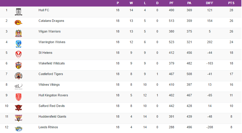 Pour la rencontre au sommet, Hull FC-Warington. Les Airlie Birds conservent leur avance dans la compétition en l’emportant sur les Wolves au score de 12-19.