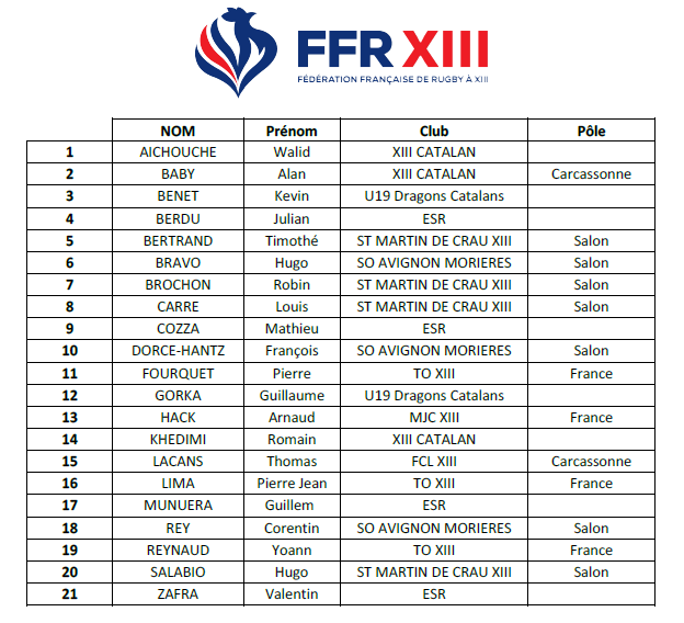 La tournée débutera par un entrainement le mardi 11 Avril à 15h30 au Stade Roger Brian Complexe de Grazailles (CARCASSONNE) et se clôturera le mercredi 19 Avril.