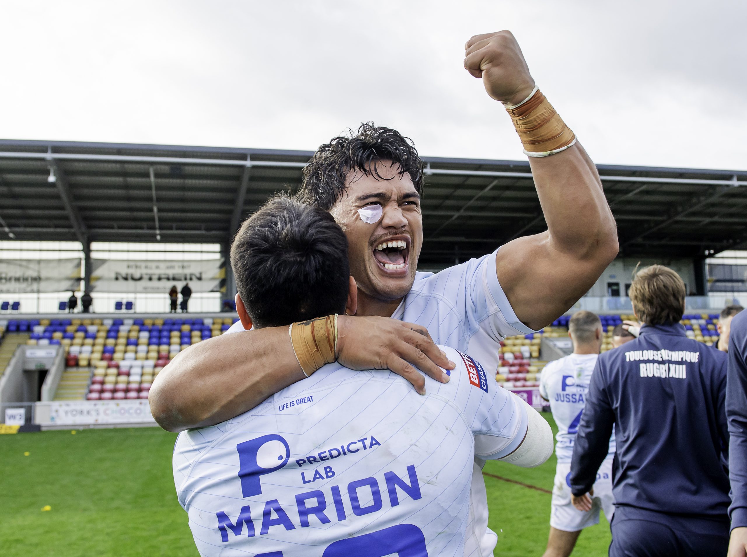 Picture by Allan McKenzie/SWpix.com – 05/10/2025 – Rugby League – Betfred Championship Grand Final – York Knights v Toulouse Olympique – LNER Community Stadium, York, England – Toulouse’s Reubenn Rennie celebrates victory over York.