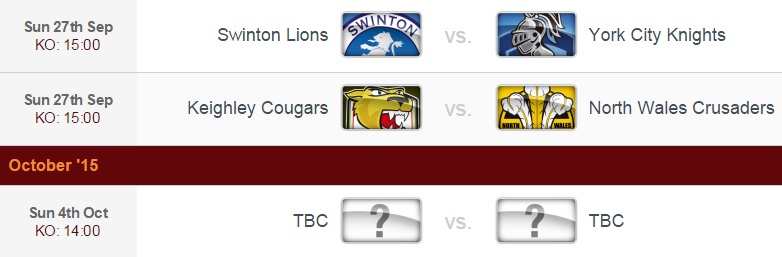 Leader de la saison régulière, Oldham a décroché dimanche (20/09) son billet pour prendre part au Championship 2016 grâce à sa victoire 31-20 sur Keighley, son dauphin au classement, lors de la finale d’accession. Toutefois, rien n’est encore perdu pour les Cougars (surnom des joueurs de Keighley) : dimanche (27/09), ils recevront les North Wales Crusaders (5èmes au classement) en demi-finale tandis que l’autre demie opposera Swinton (3ème) à York (4ème). La deuxième place pour rejoindre l’étage supérieur trouvera donc preneur lors de la deuxième finale d’accession, qui aura lieu le dimanche 4 octobre.