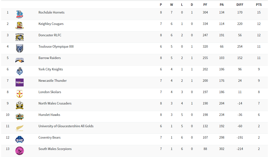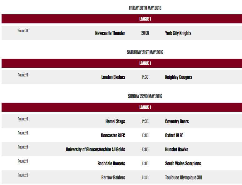 Ce week-end se joue la neuvième journée de League One. De son côté, le Toulouse Olympique XIII ira affronter les Barrow Raiders au Craven Park.