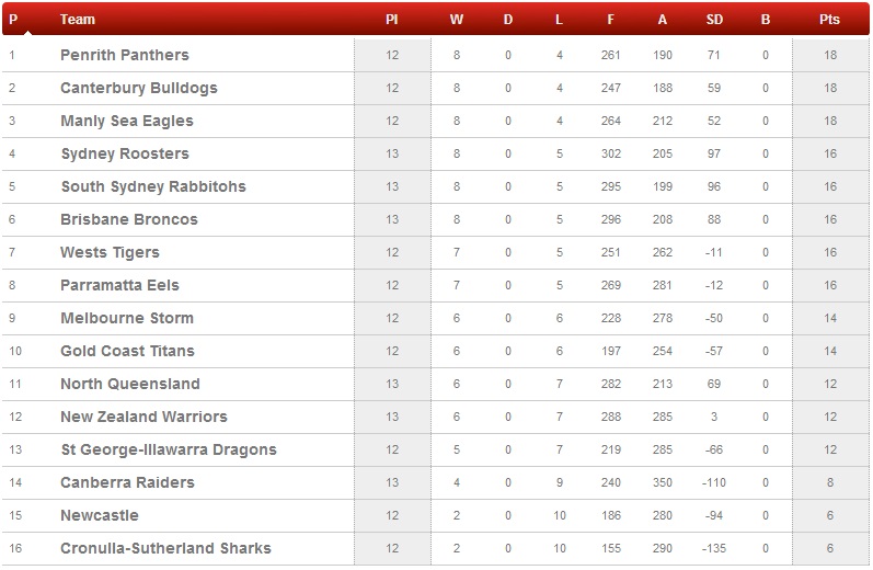 Mais, dans le même temps, 2 des 3 co-leaders du classement, Penrith et Canterbury, ont également la faveur des pronostiques pour s’imposer et maintenir un rythme élevé.