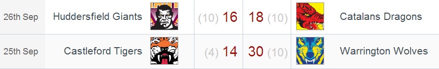 Il y a eu moins de suspense dans l’autre demi-finale d’accession qui opposait Castleford à Warrington. Les Wolves ont pris l’avantage dès la quatrième minute, pour ne jamais le lâcher. Mais c’est dans le second acte que les débats se sont élevés, spécialement du côté des visiteurs. Autour de l’heure de jeu, les hommes de Tony SMITH semblaient avoir pris l’ascendant physique sur leurs adversaires, ce qui leur a permis de marquer 3 essais coup sur coup. Les Tigers n’ont pas résisté et finissent par s’incliner 30 à 14. Ils terminent toutefois cette saison 2014 avec un bilan plus qu’honorable (finale de Challenge et Cup et demi-finale d’accession en Championnat).