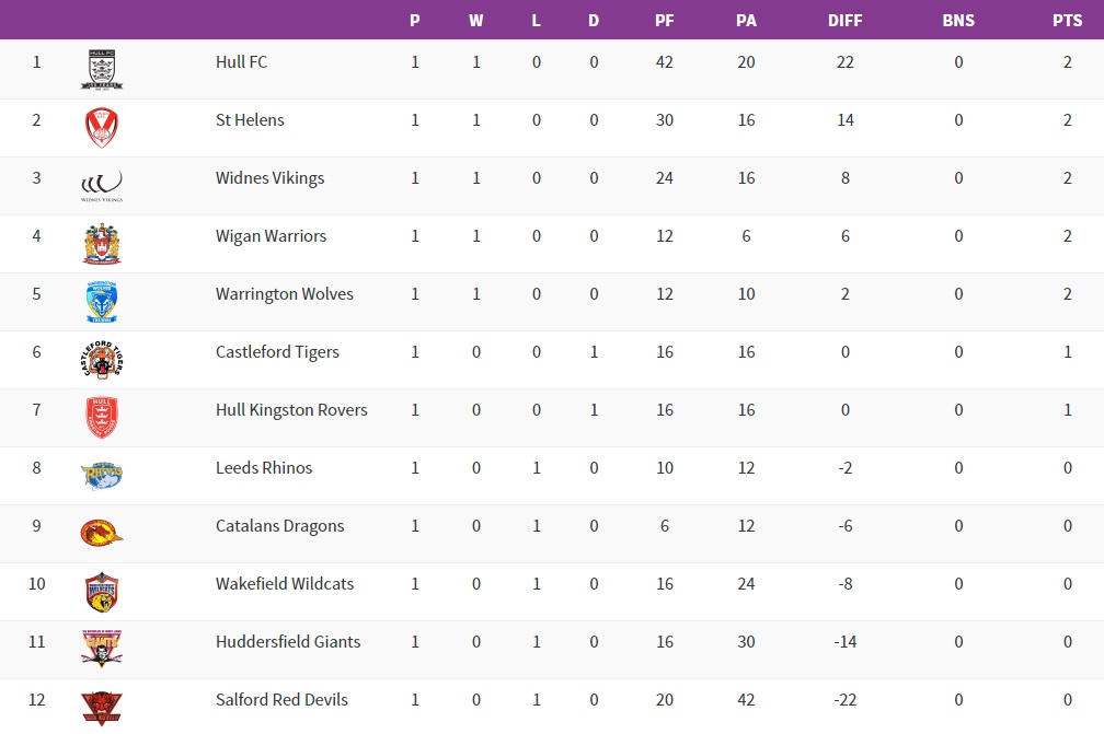Après son coup d’éclat à Leeds lors du round précédent, Warrington tentera de confirmer à la maison avec la réception de Hull KR. Castleford accueille de son côté Wakefield et Leeds tentera de se rattraper à Widnes.