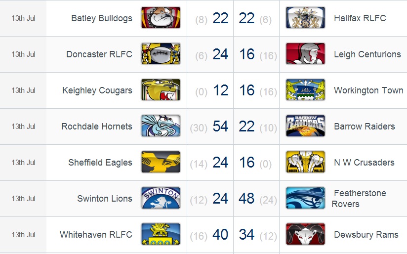 Pour commencer, Wakefield s’est imposé de justesse face à Widnes, jeudi (10/07). Qu’importe, les Wildcats ont confirmé une fois de plus leur bonne forme du moment, plongeant leurs adversaires du jour un peu plus dans le doute. Les Vikings menaient pourtant d’une courte tête à la mi-temps, mais les locaux ont renversé la tendance en moins de dix minutes en seconde période. Malgré un dernier essai, Widnes n’a pas réussi à reprendre l’avantage au score et finit par s’incliner (12-10).
