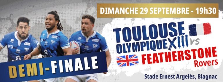 Les places pour la demi-finale Toulouse Olympique XIII v Featherstone Rovers, qui se jouera ce dimanche 29 septembre au stade Ernest Argelès de Blagnac (19h30) sont désormais en vente.